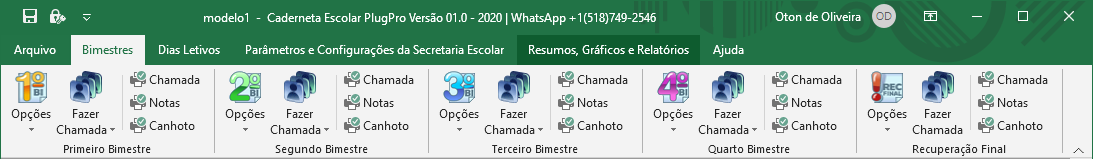 A Caderneta PlugPro é baseada em planilhas de cálculo do Excel. A organização do trabalho é dividida em tarefas: Bimestres, Parâmetros de Configuração, Datas, Relação de Alunos etc. Conheça cada uma das tarefas a seguir.