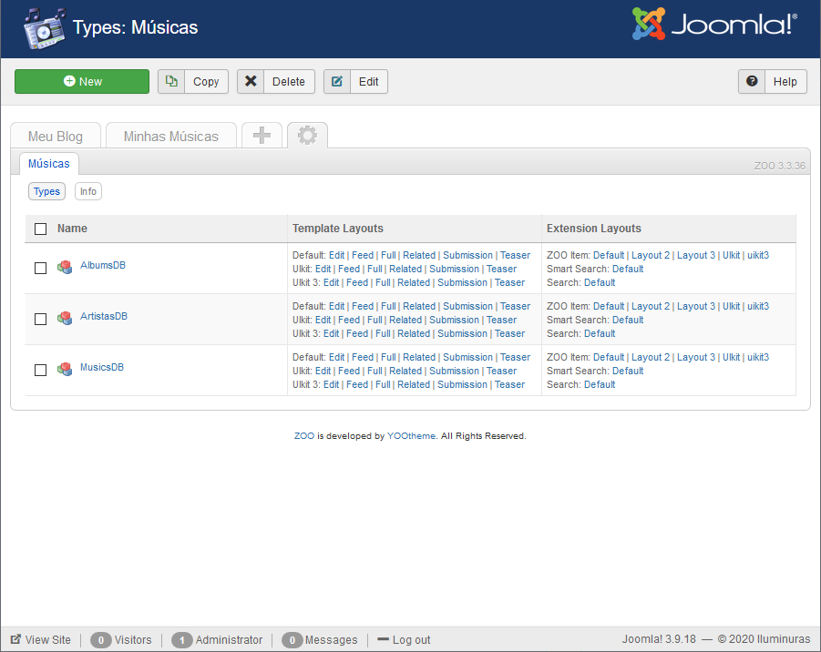 O Aplicativo "Músicas" foi desenvolvido com a versão gratuita do CCK Zoo da Yootheme baseado no "Blog". Com o APlicativo "Músicas" você pode publicar álbuns de músicas, compositores e artitas em seu site. Veja aqui o demo.
